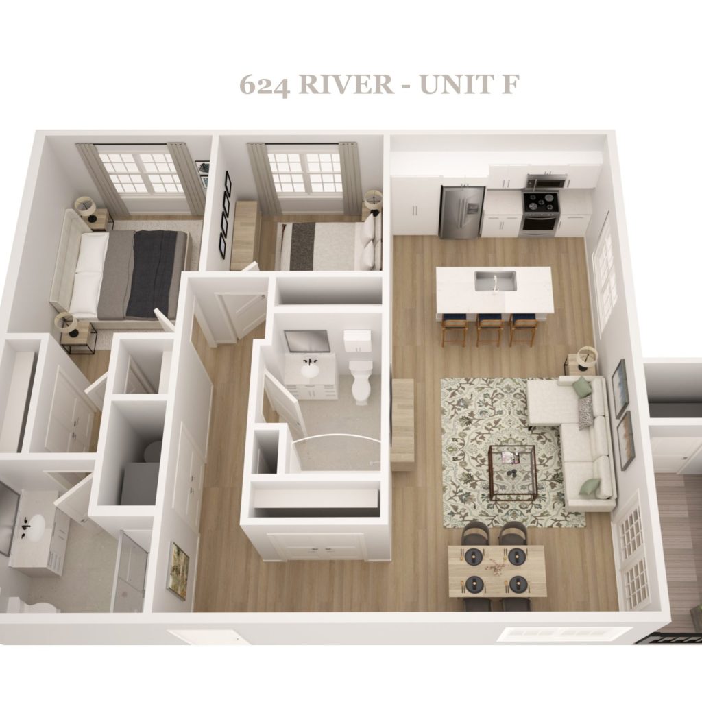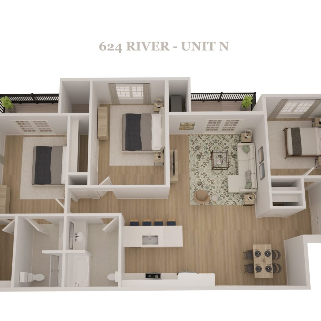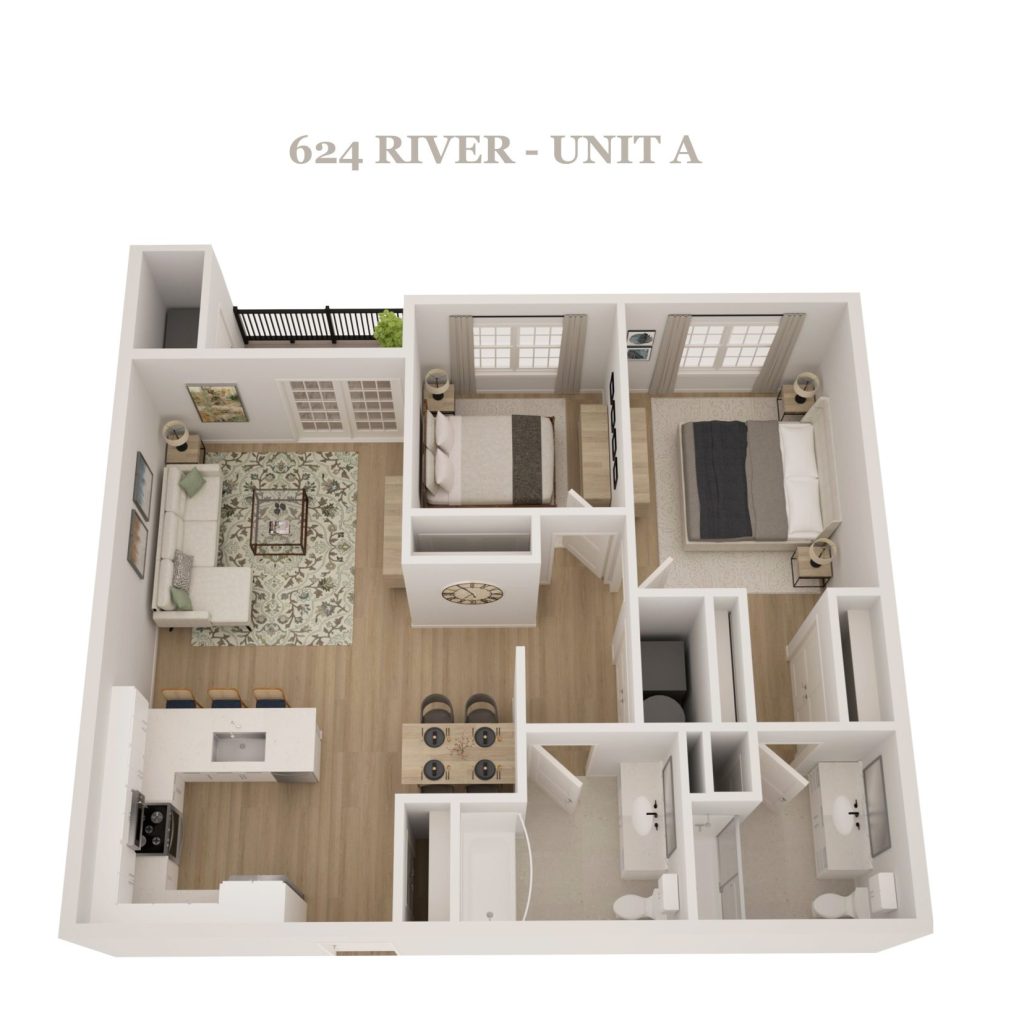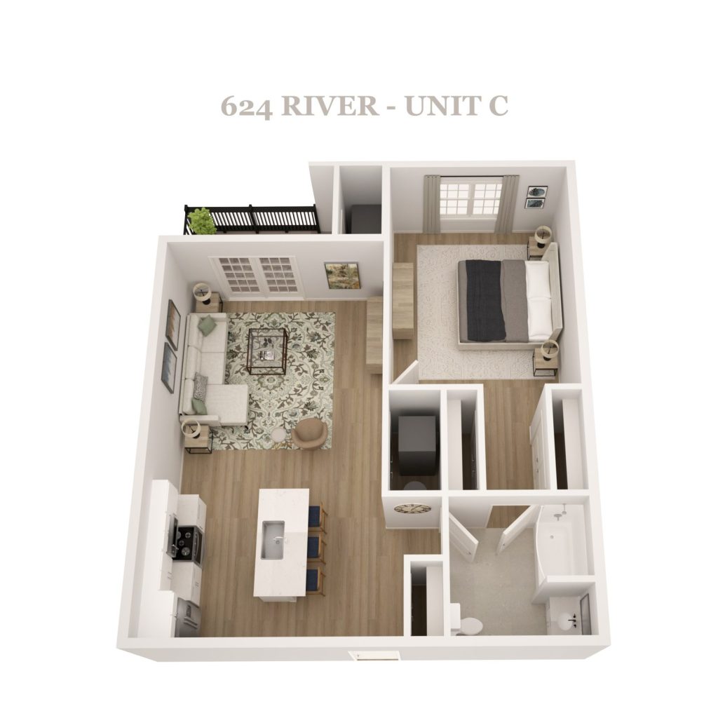 Featuring a blend of spacious studio, one-bedroom, two-bedroom, three-bedroom residences, 624 River Road is designed to accommodate a variety of lifestyles.